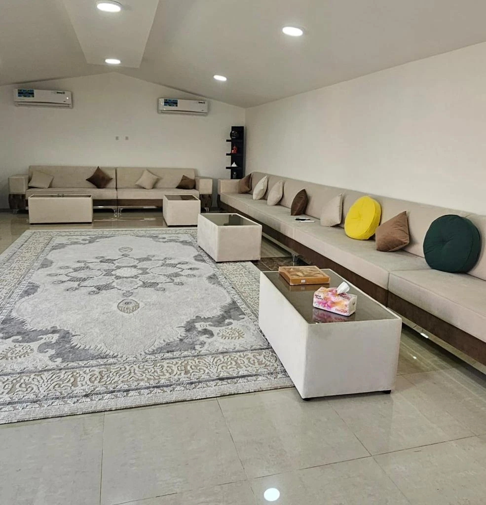 Experience the ultimate Farm Stay in Ras Al Khaimah at Lazord, a spacious farmhouse offering a delightful retreat. This best farm stay in UAE features three master bedrooms, designed for comfort and relaxation. Perfect for family getaways or larger gatherings, Lazord boasts a Majlis area accommodating 30 guests and a cozy living room. The large garden and orchard enhance your stay, providing a serene backdrop.