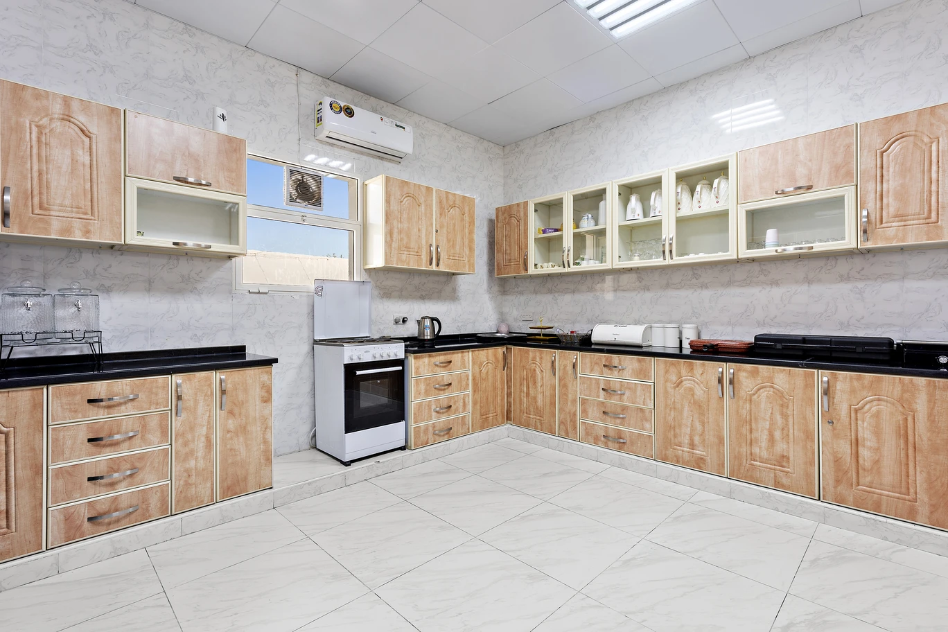تم تصميم المطبخ العصري في الفيلا ليمنحك تجربة طهي ممتعة وسهلة، حيث يحتوي على جميع الأجهزة الحديثة التي قد تحتاجها، بما في ذلك فرن، ميكروويف، غسالة أطباق، وماكينة قهوة لتحضير مشروبك المفضل في أي وقت. بالإضافة إلى ذلك، تتوفر طاولة طعام كبيرة تتسع لجميع الضيوف، مما يجعل الوجبات العائلية أكثر راحة ودفئًا