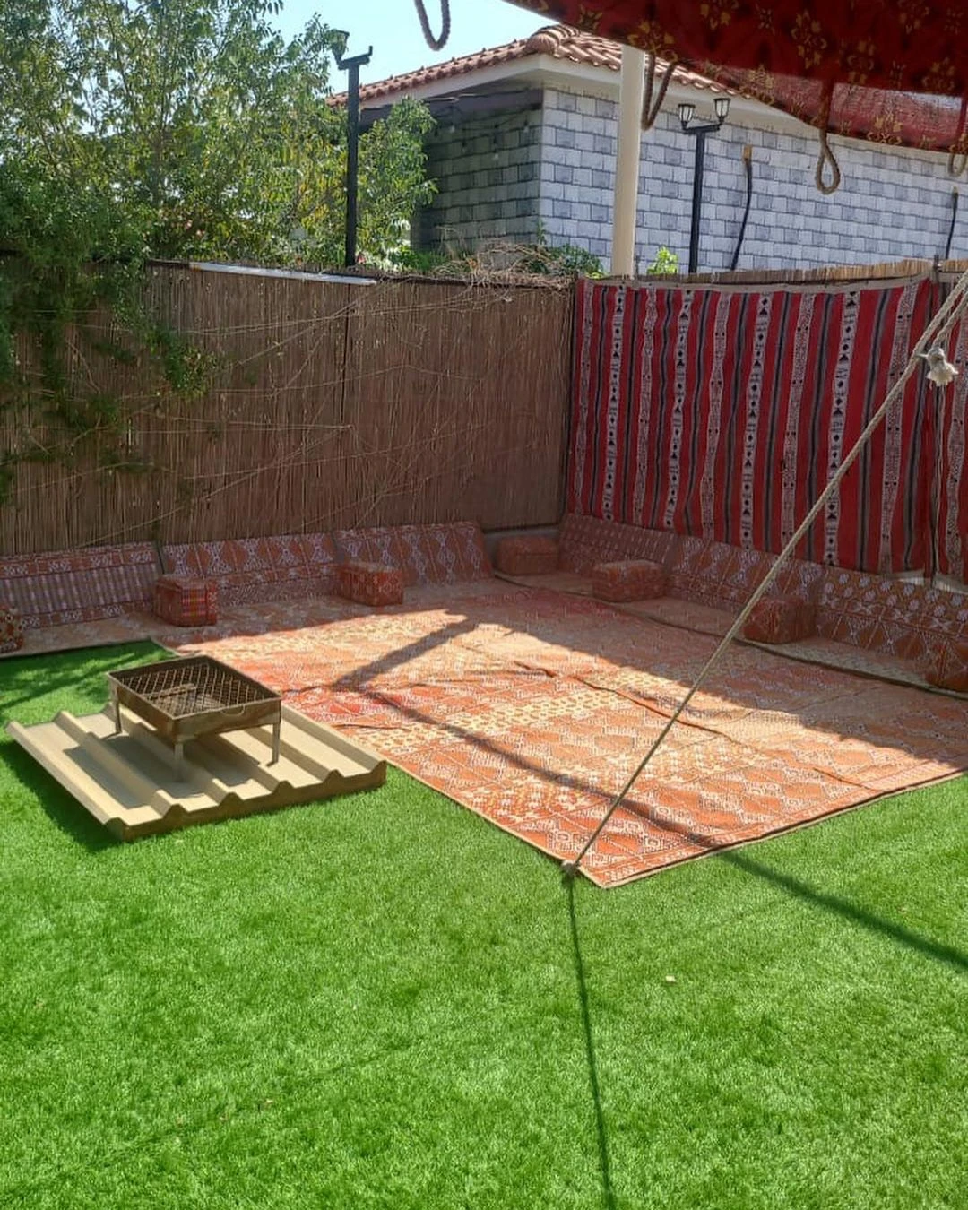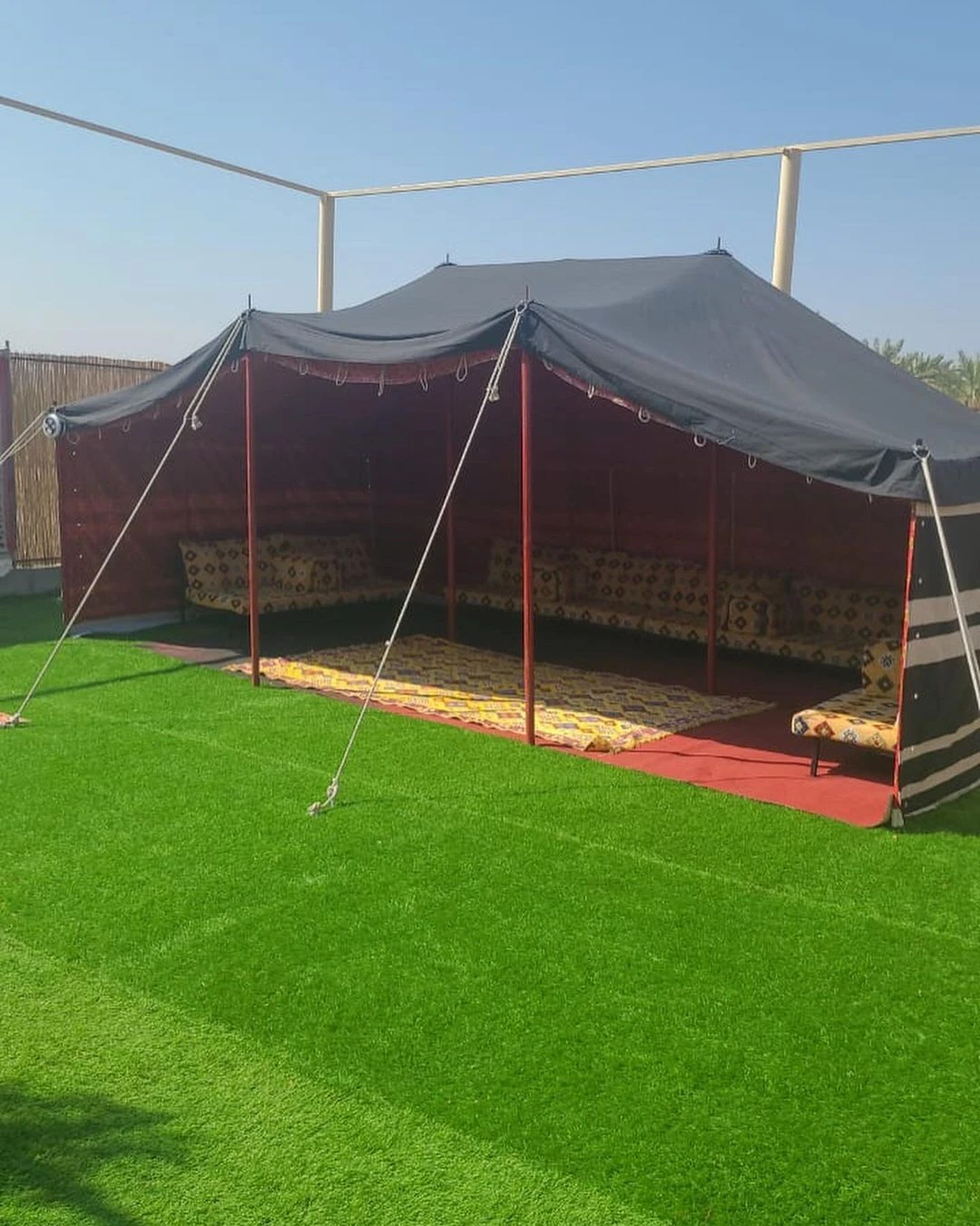 تُعتبر الحديقة الواسعة المحاطة بجمال الخيام العربية التقليدية من أبرز مميزات هذه المزرعة. فإن تلك الخيام تضيف لمسة أصيلة وتجعل المكان مثاليًا للاسترخاء والتجمعات العائلية لقضاء أمسيات دافئة.