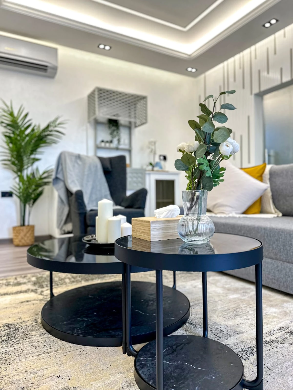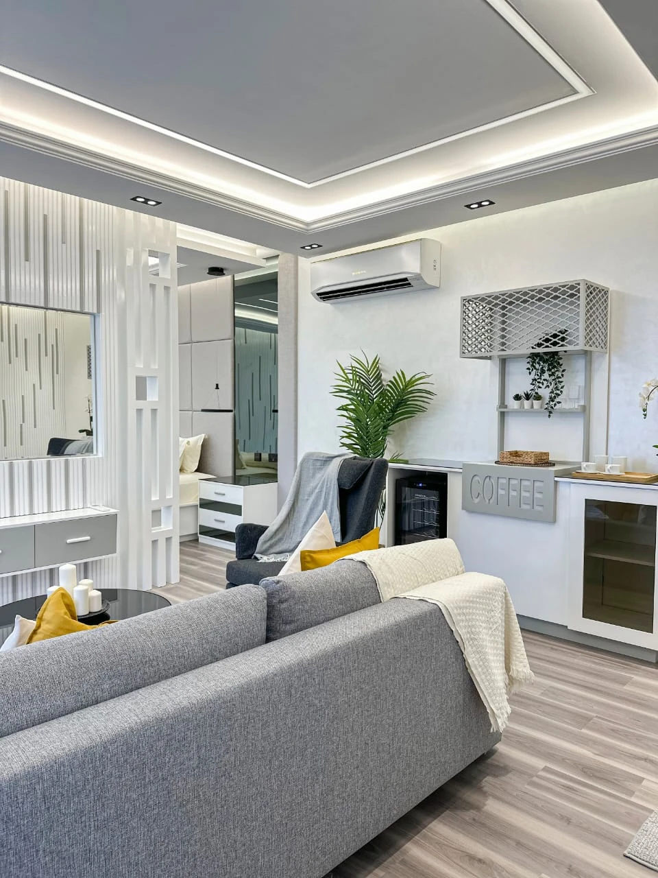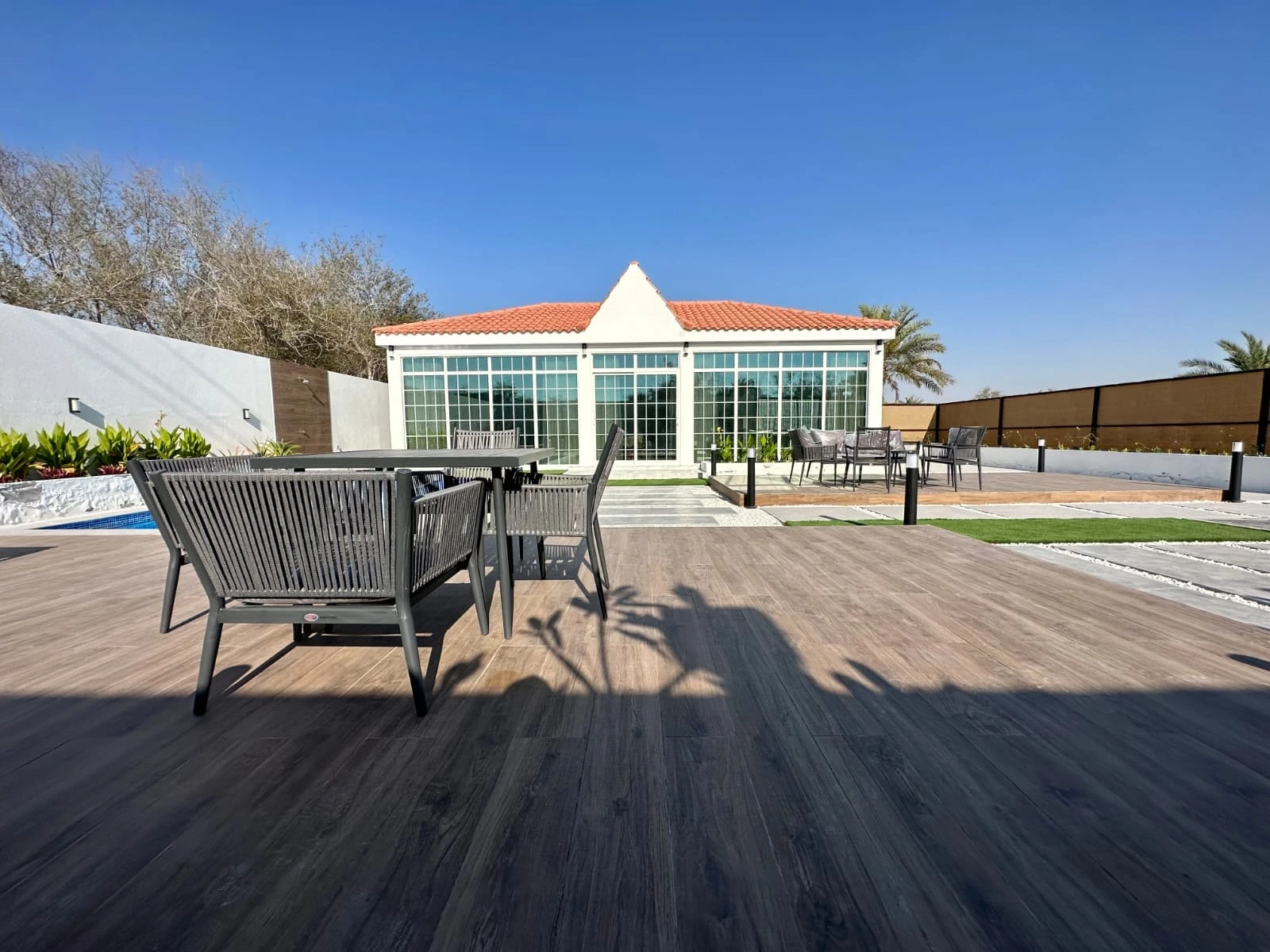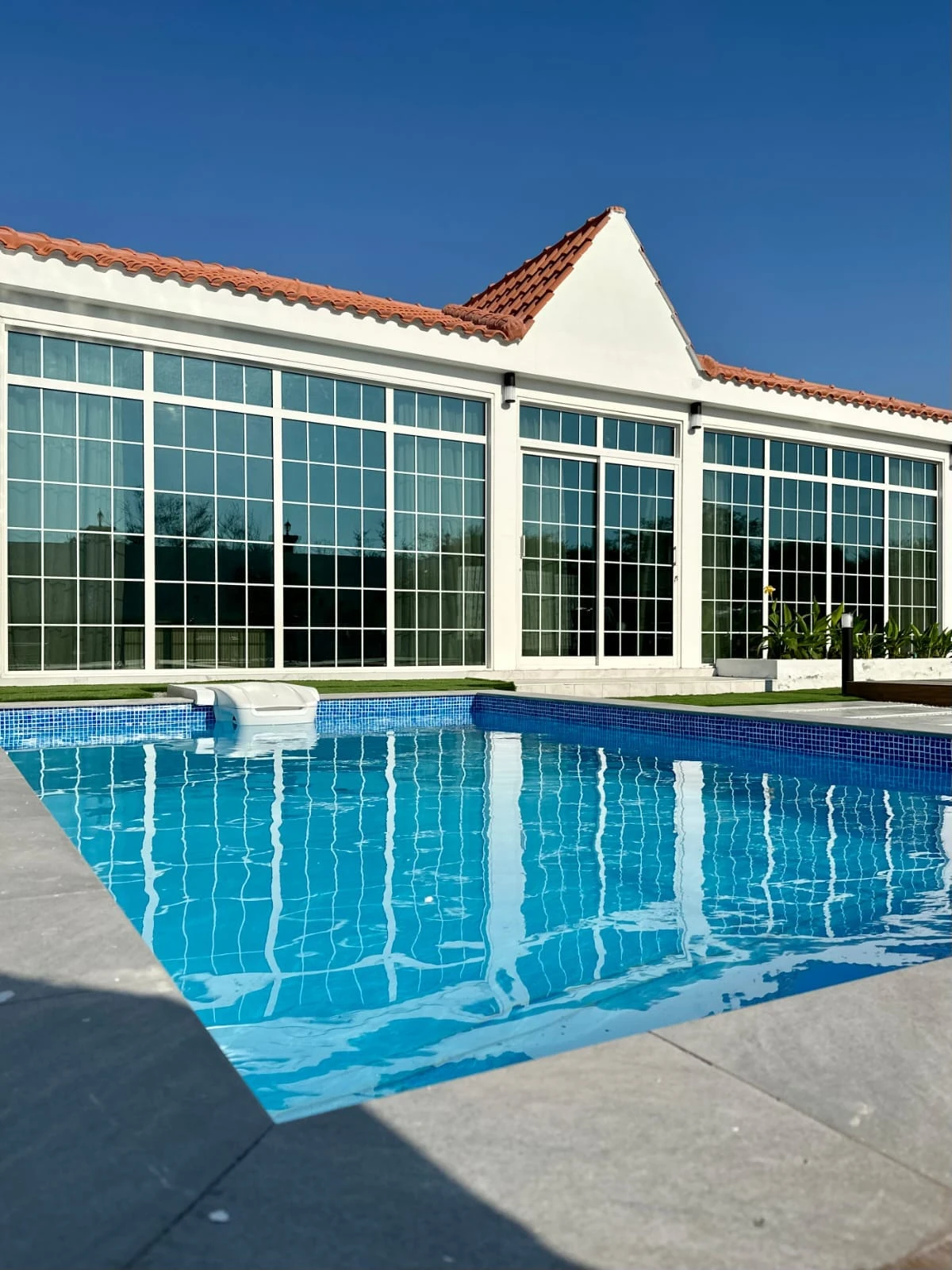 عند دخولك إلى الداخل، ستُبهر بغرفة المعيشة المصممة بأسلوب حديث وفخم، مع إطلالة خلابة تطل على حوض السباحة الجذاب. تم تصميم هذه الغرفة لتوفير أقصى مستوى من الراحة والاسترخاء، مما يجعلها المكان المثالي للاستمتاع بأوقات الاستراحة والترفيه.