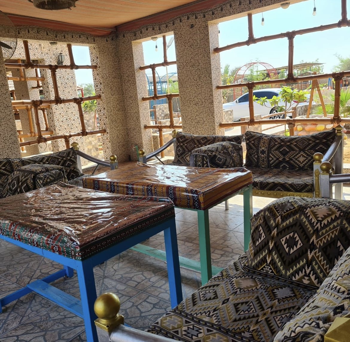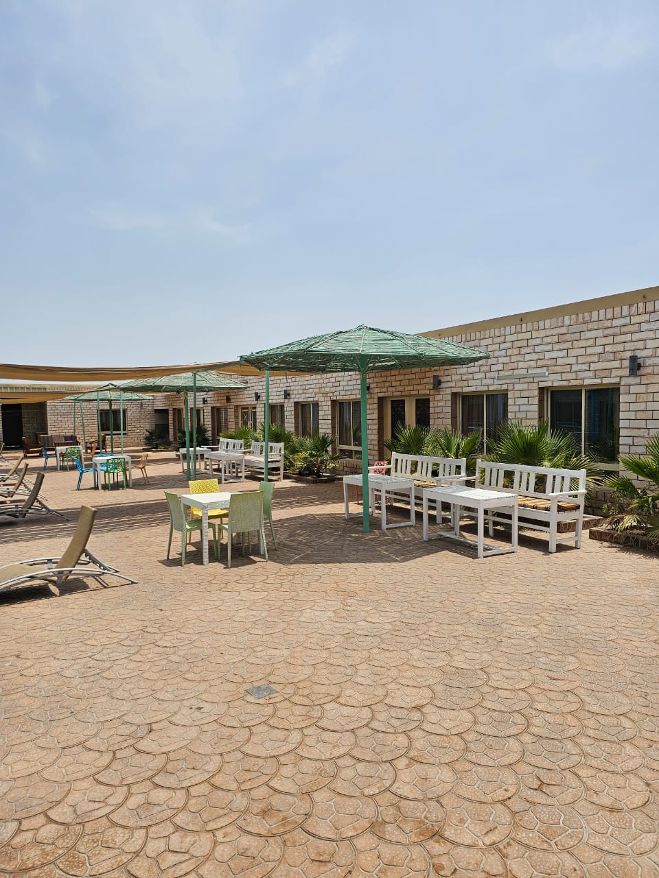 Throughout the farmhouse, modern LED screens are strategically placed, offering entertainment options that cater to every mood and occasion. An inviting outdoor sitting area, sheltered stylishly, invites guests to unwind and savor moments of relaxation against the backdrop of breathtaking views, whether enjoying a morning coffee or an evening drink.