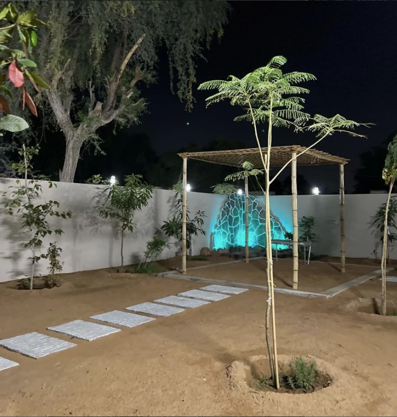 ولمحبي الطبيعة، تحيط الاستراحة بمساحات خضراء جميلة تمنحك إحساساً بالهدوء والراحة. يمكنك القيام بجولات مشي في الأجواء الهادئة أو الاستمتاع بمشاهدة غروب الشمس من التراس الخارجي. هذه الاستراحة توفر لك تجربة استثنائية تجمع بين الراحة والأنشطة الممتعة في مكان واحد