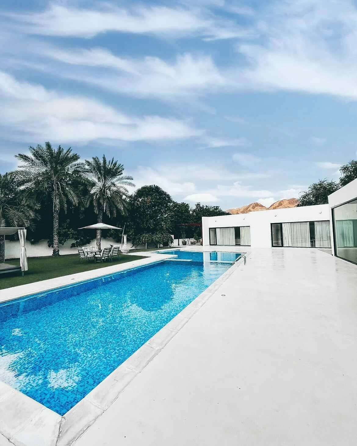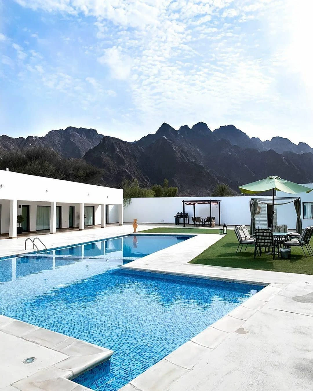 تتوفر في شاليهات حتا حوض سباحة كبيرة ومناطق مختلفة للجلوس، مما يوفر بيئة هادئة ومريحة للضيوف. بالإضافة إلى ذلك، يوجد داخل المزرعة غرفة جلوس مميزة وزاوية قهوة مريحة، حيث يمكن للضيوف الاسترخاء والاستمتاع بأوقاتهم.