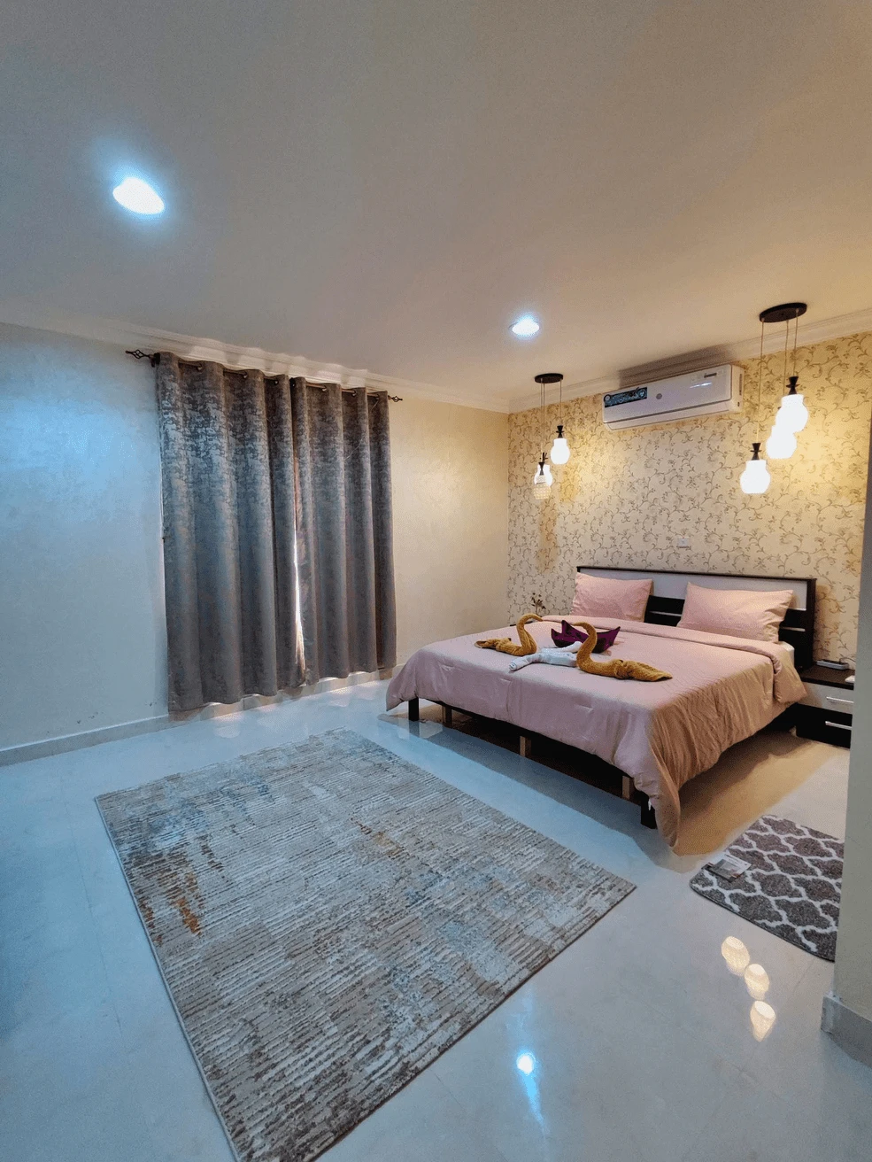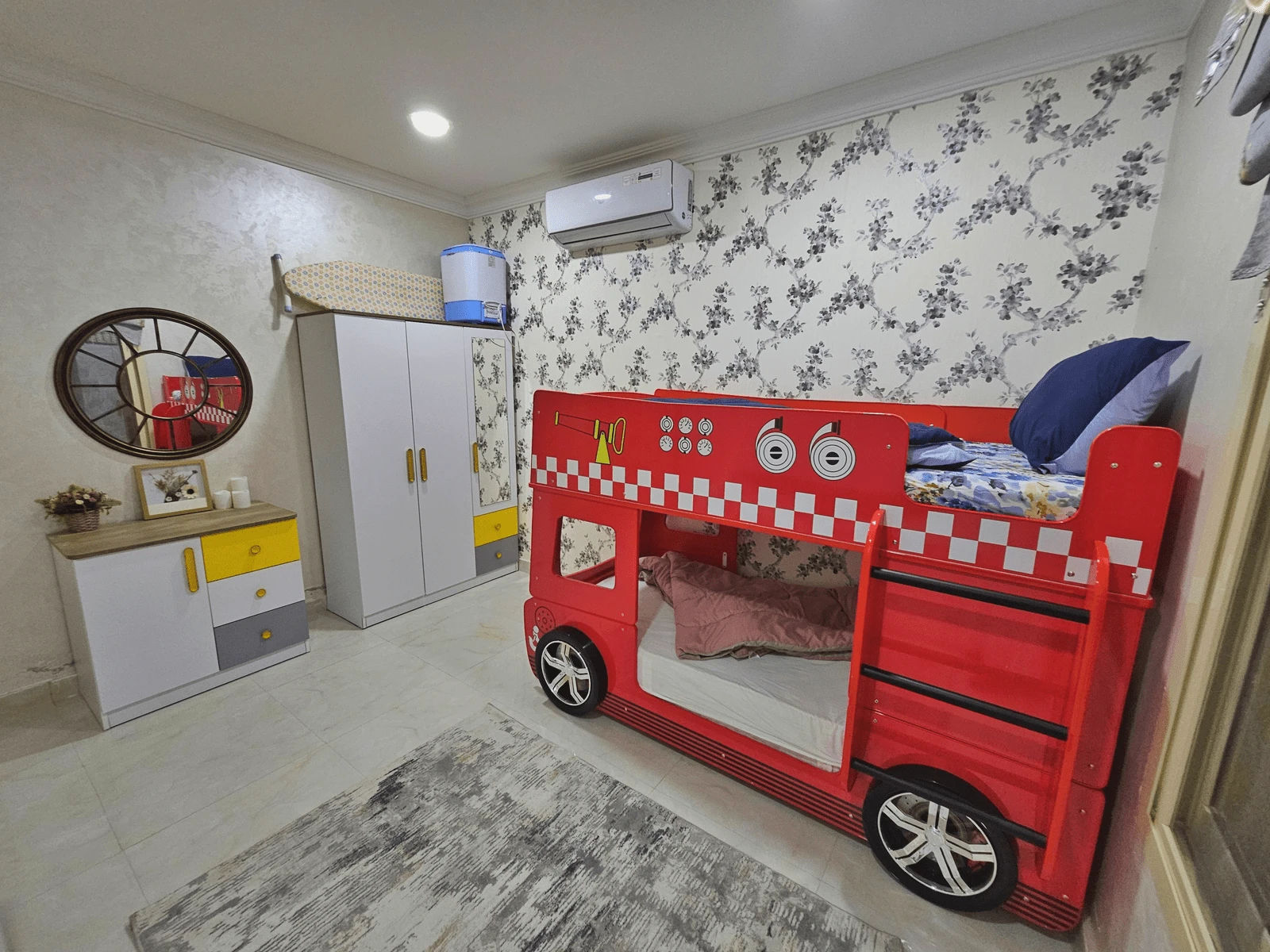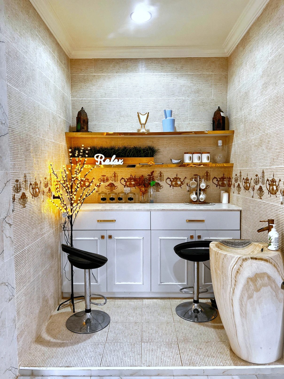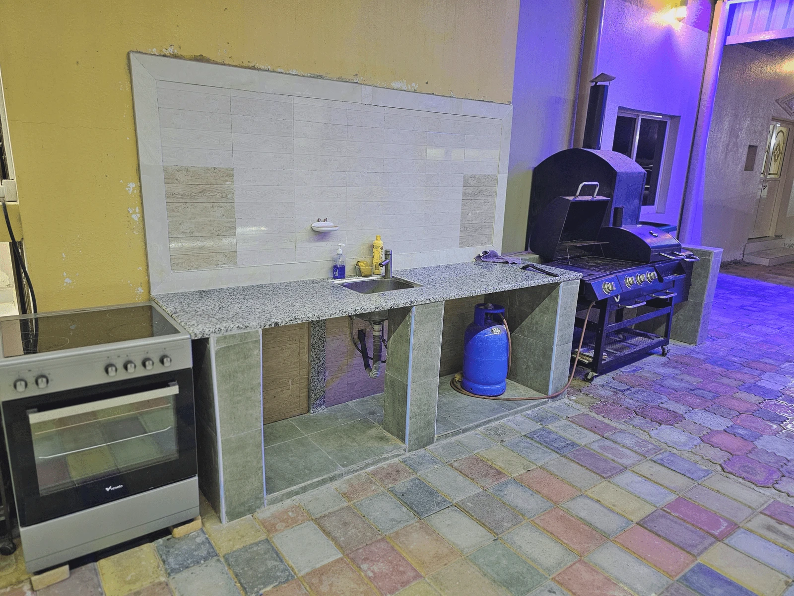 Inside Al Ain Farm House, a generously sized living room welcomes you, complete with WiFi connectivity and entertainment options on the smart TV. Indulge in moments of relaxation at the charming coffee corner. Engage in friendly indoor activities, whether it's a lively baby football match or a pool game, adding a playful touch to your farm stay al ain.