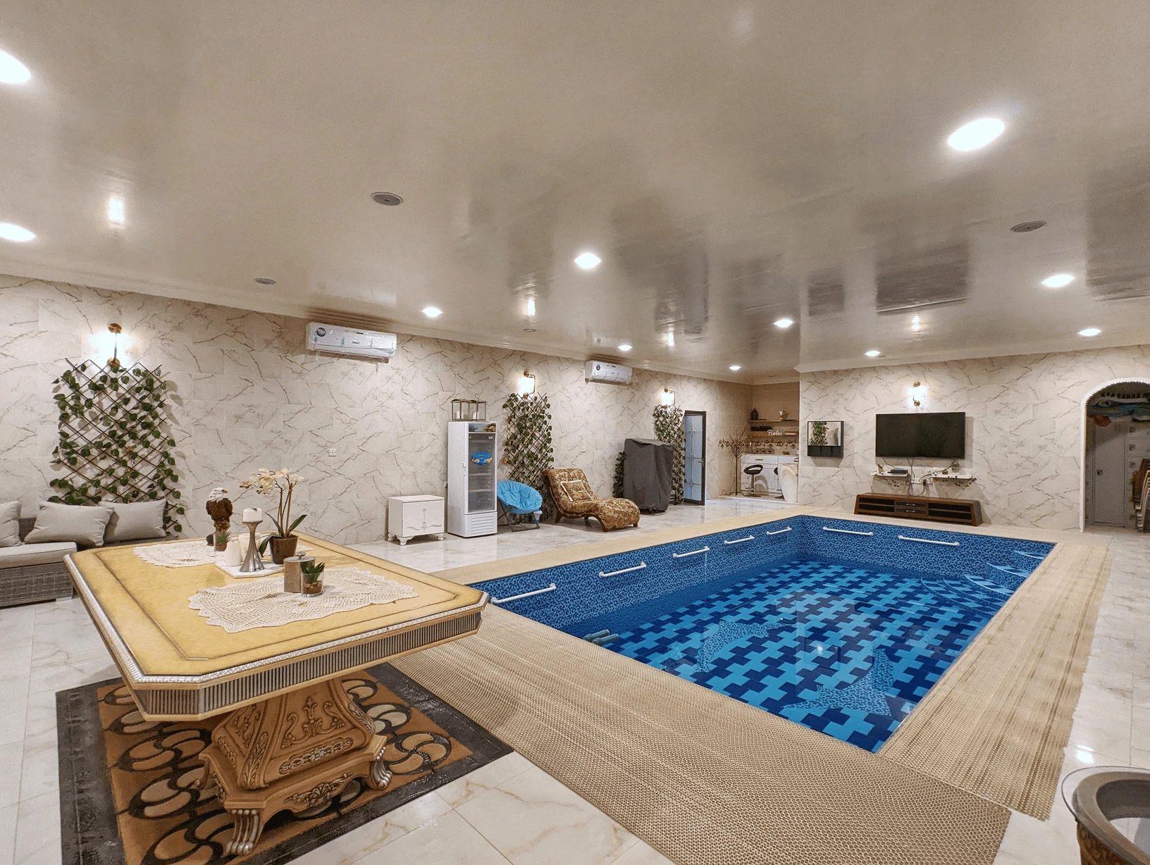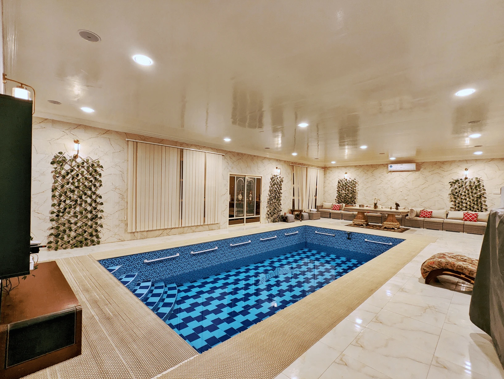 Al Reef Al Ain Farm House, is a delightful 2-bedroom farmhouse with a luxury with a spacious indoor pool equipped with a sound system and a seating area.
