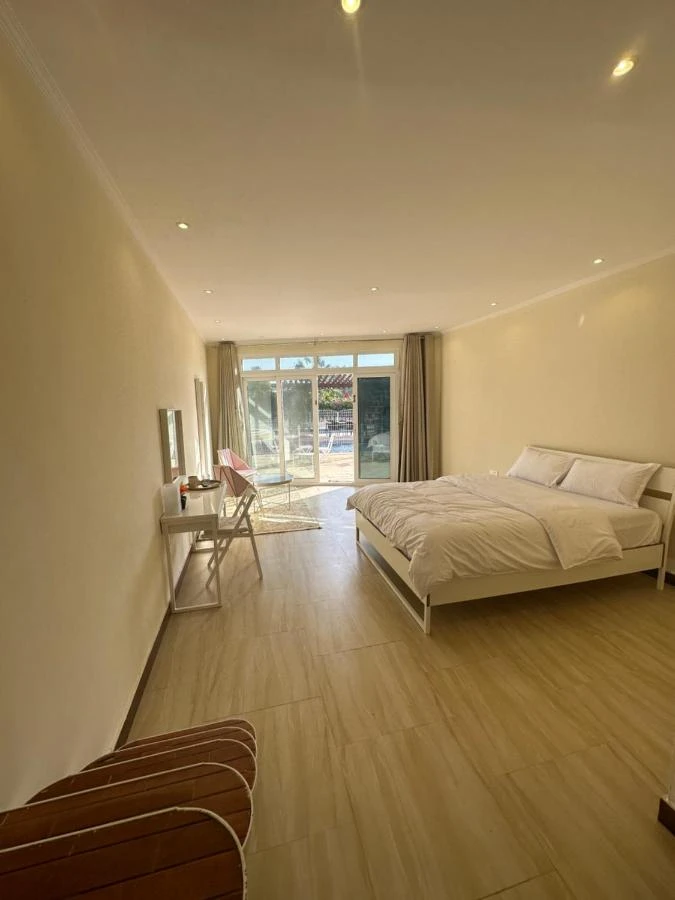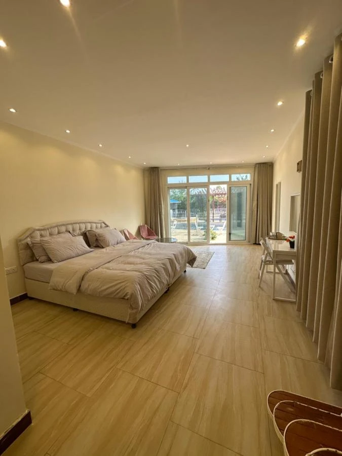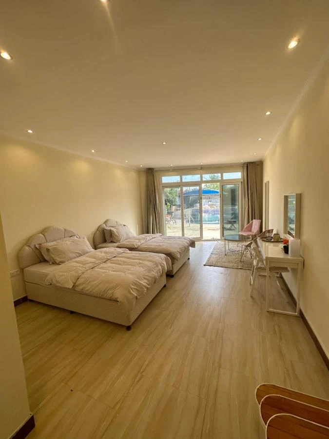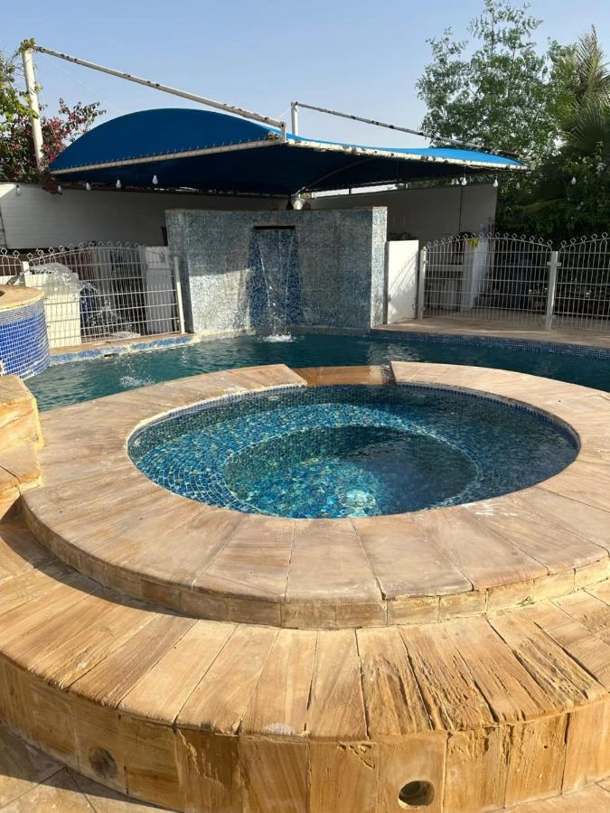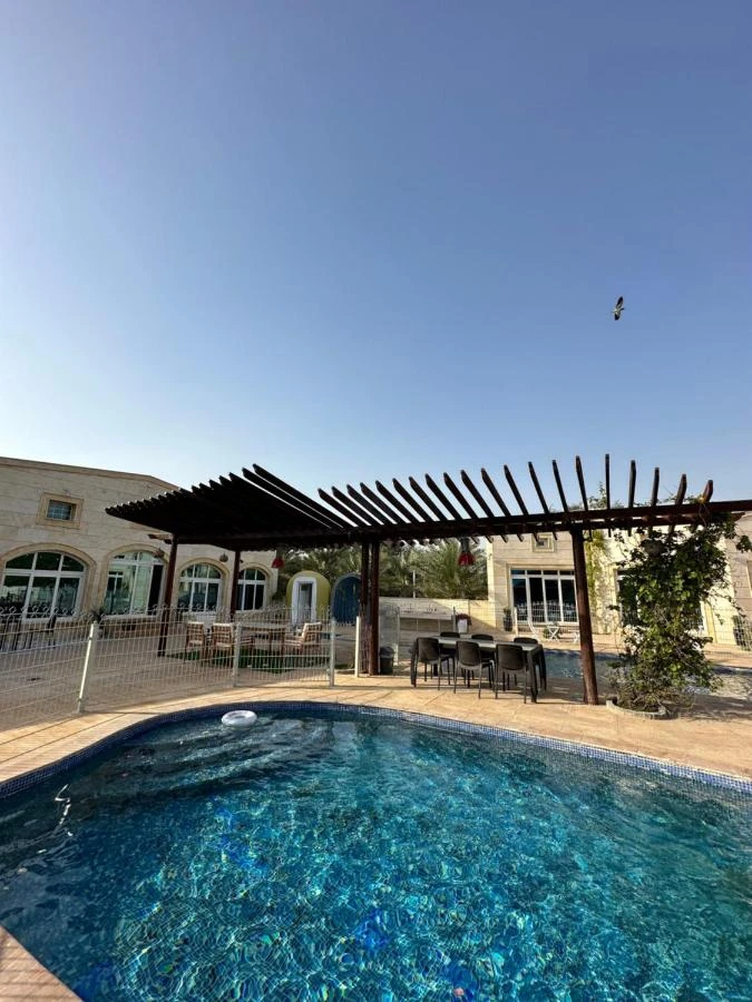 Alzubair Oasis Resort Farm House Sharjah stands as a delightful farmhouse featuring four generously sized bedrooms, all offering picturesque views of the central courtyard and the inviting pool. The property has an expansive layout, providing ample outdoor spaces for you and your loved ones to relish. Step into the outdoor haven, where two inviting swimming pools await—one for adults and another for the little ones. The dedicated outdoor play area, complete with a bounce castle, ensures endless fun for the children. Sports enthusiasts can partake in friendly matches at the Cricket/Football Ground or enjoy a game of volleyball.