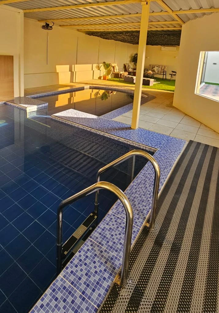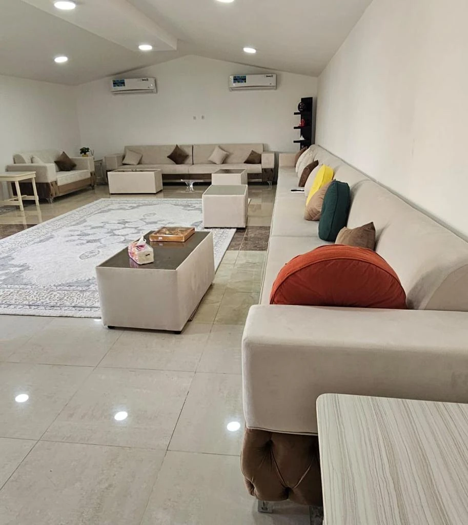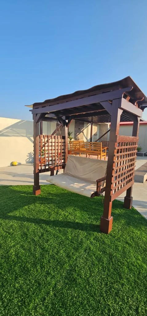 Experience the ultimate Farm Stay in Ras Al Khaimah at Lazord, a spacious farmhouse offering a delightful retreat. This best farm stay in UAE features three master bedrooms, designed for comfort and relaxation. Perfect for family getaways or larger gatherings, Lazord boasts a Majlis area accommodating 30 guests and a cozy living room. The large garden and orchard enhance your stay, providing a serene backdrop.