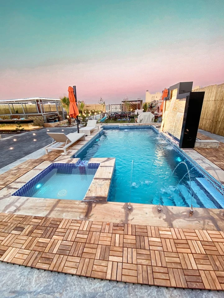 Discover Oasis Resort in Al Ain, a delightful 3-bedroom property with a lot to offer. As you step outside, you'll be greeted by a beautifully landscaped garden with several water displays and three separate outdoor seating areas, allowing you to enjoy the sounds of the man-made river surrounding the property. A spacious pool, accompanied by a sun deck, invites you to unwind and relax.
