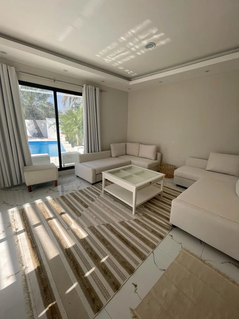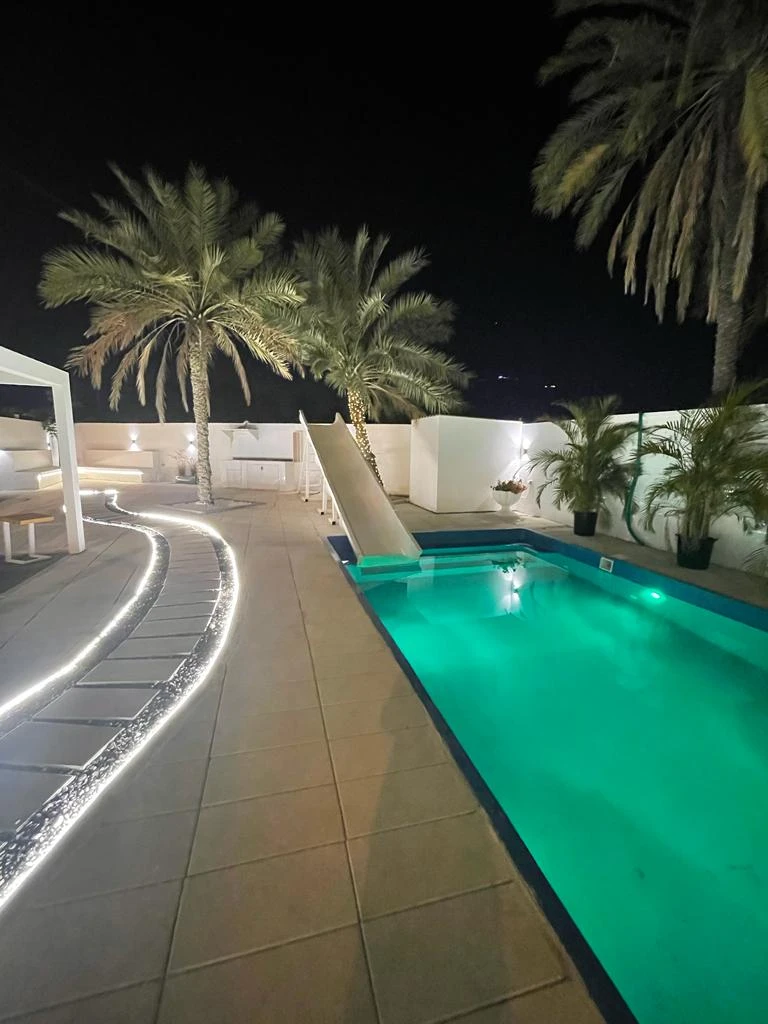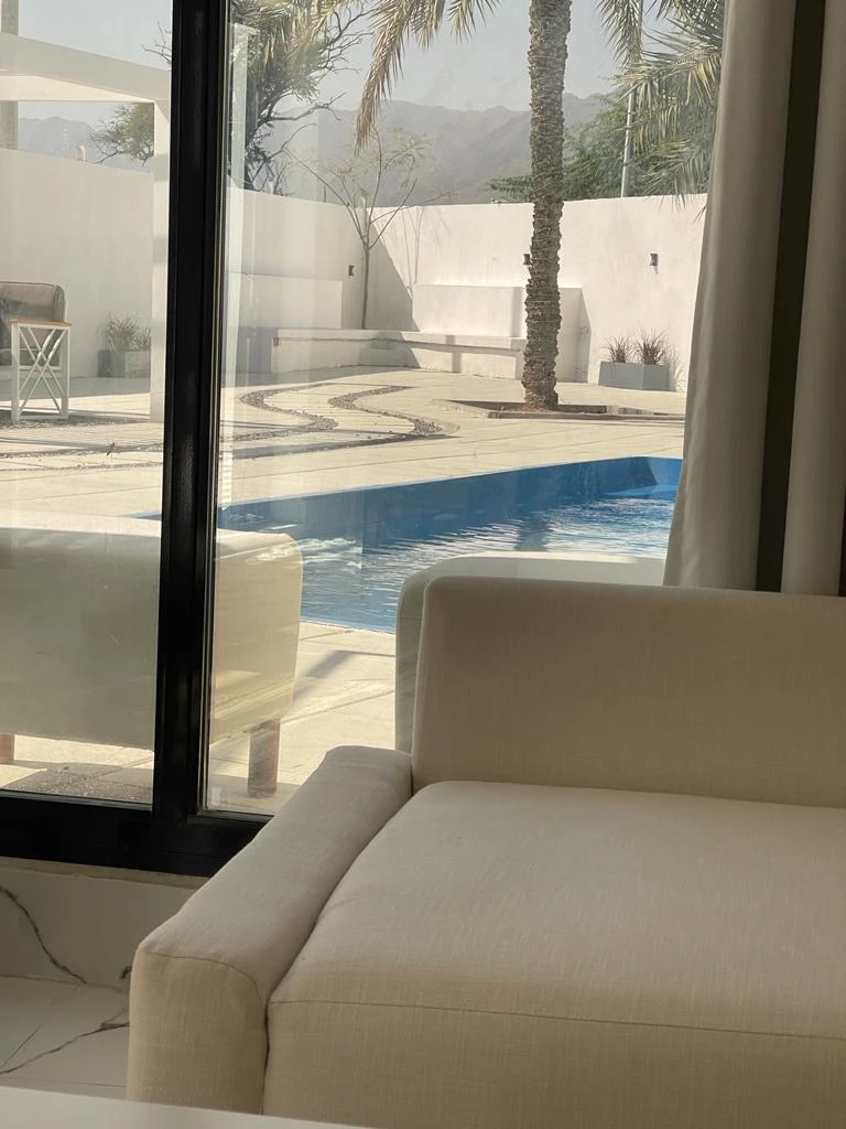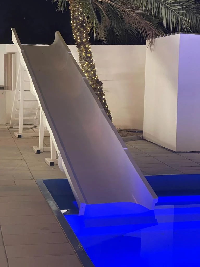 Introducing a charming, recently constructed farm villa meticulously crafted to ensure your utmost comfort. In Sharjah, this exquisite villa offers breathtaking mountain views. You'll find a splendid swimming pool with an exciting slide, adding a touch of adventure to your stay.